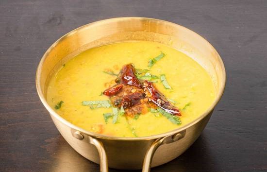 Yellow lentils tempered with garlic, curry leaves, mustard, and cumin seeds.