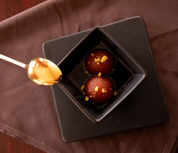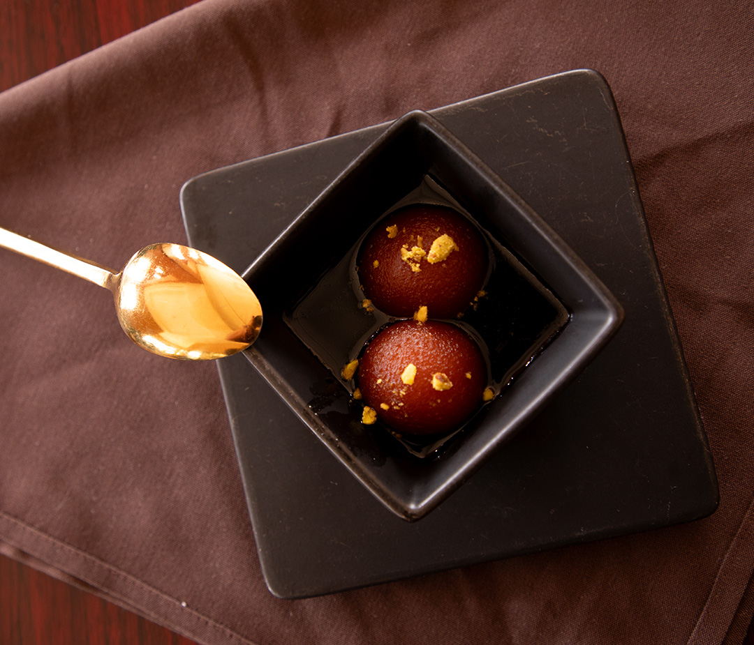 Traditional Indian dessert with spongy and moist milky balls soaked in rose scented sweet syrup and sliced